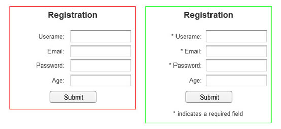 如果在注冊(cè)表單里面有可選字段,那么我們就要強(qiáng)調(diào)必填字段。通常一個(gè)小標(biāo)志例如星號(hào)(*)就足夠了。它可以讓用戶自覺發(fā)現(xiàn)并填寫必須填的字段。
