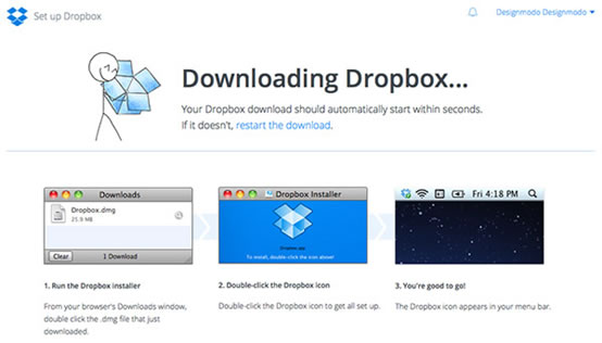 Dropbox在這一方面做得很好。用戶在創(chuàng)建賬戶是自動(dòng)重定向到dropbox安裝助理。