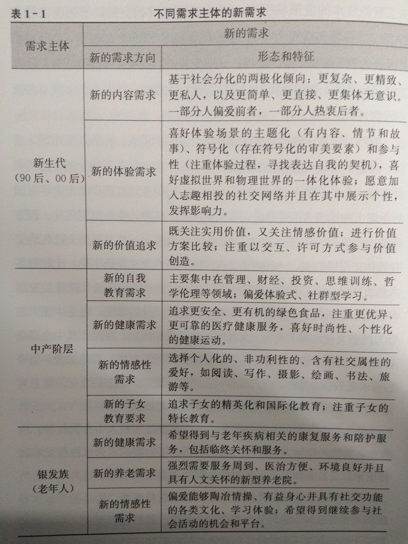 第二,隨著社會(huì)結(jié)構(gòu)的變化,出現(xiàn)了基于族群的新需求。以收入、職業(yè)、社會(huì)階層、生活方式、價(jià)值觀、情感方式、審美傾向等為劃分標(biāo)志,現(xiàn)代社會(huì)出現(xiàn)了多種具有共同需求偏好的人群(我國(guó)港臺(tái)地區(qū)通常稱作族群),如波波(BoBo)族、奔棄族、悠客族、SOHO族等。它們的外延和內(nèi)涵未必很清晰,有的帶有娛樂(lè)成分,并不是嚴(yán)謹(jǐn)、準(zhǔn)確的社會(huì)學(xué)概念,但具有一定的需求特質(zhì)。新的人群會(huì)有一些屬于自已的或打上鮮明族群印記的生活方式和消費(fèi)方式,從而產(chǎn)生一些新的需求一一它們較多地出現(xiàn)在具有情感、審美色彩的消費(fèi)領(lǐng)域。拿中產(chǎn)階層來(lái)說(shuō),正是由于他們普遍存在焦慮,才有了對(duì)心靈雞湯通俗哲學(xué)的需求;由于他們對(duì)社會(huì)流動(dòng)充滿渴望,才會(huì)對(duì)各類(lèi)新的子女教育項(xiàng)目趨之若鶩。城市中的文藝青年正是有了“刻奇”(kitsch,大體上與“矯情”同義)心理,才會(huì)追逐新的格調(diào)。而生活在都市邊緣的殺馬特(smart)則是網(wǎng)絡(luò)上各種新奇體驗(yàn)的催生者和追捧者。沒(méi)有他們,就不會(huì)有那么多的直播,也不會(huì)有那么多的網(wǎng)紅。