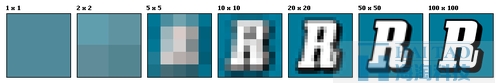 日常所說的“這張圖片的尺寸(或分辨率)是100x100像素”,一般都是在描述數(shù)字圖片,這樣的描述只是說明了圖片文件包含多少個像素。比如圖1中的七張圖,我們習慣于說,第1張圖的分辨率是1x1像素,第5張圖的分辨率是20x20像素,其實只是說明了圖片的像素數(shù)而已。