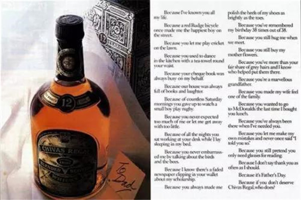 比如經(jīng)典的芝華士父親節(jié)文案,就是渲染親情。