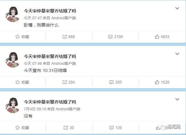 最厲害是炸出了個許愿微博,網(wǎng)友紛紛勸到,趕緊改微博名吧,就叫“今天宋仲基宋慧喬有孩子了嗎”?