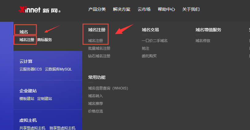 2、點(diǎn)擊域名注冊(cè);