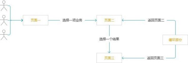 循環(huán)部分,就是為了不讓用戶的行為終止在結(jié)果頁(yè)而重新循環(huán)起來(lái)。用戶的到最終服務(wù),就會(huì)產(chǎn)生兩種行為:離開或者重新選擇。但是我們期望用戶再次產(chǎn)生價(jià)值,所以在頁(yè)面三種設(shè)定循環(huán)部分,盡量減少用戶的跳出,獲取更大的服務(wù)。