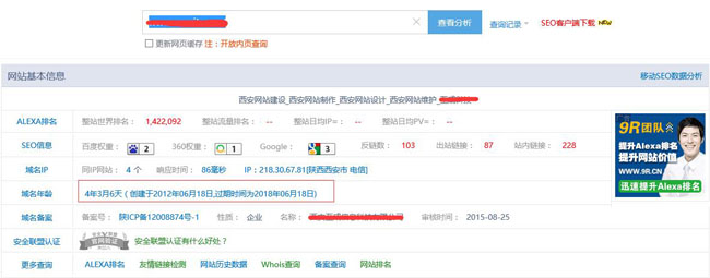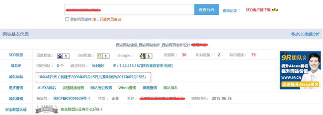 首先我們對比了很多同行業(yè)的網(wǎng)站發(fā)現(xiàn)一個問題,就是排在前面的網(wǎng)站域名少則五六年 多則十幾年的老域名。下面放幾個截圖為證: