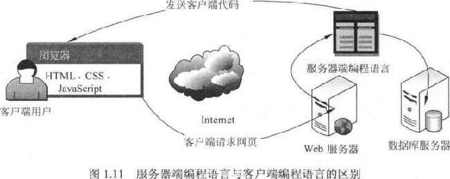 很多初學(xué)者不太理解服務(wù)器端編程語言與客戶端編程語言的區(qū)別,圖1.11解釋了這兩 類編程語言之間的不同之處。