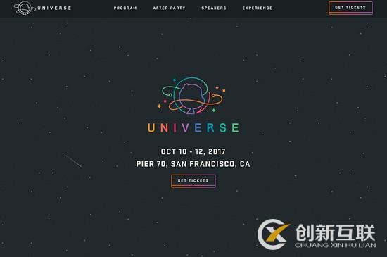 簡單而低調的背景紋理是提升整個設計的可用性的好方式。在去年的Github宇宙會議的頁面上,設計師就采用了簡單的黑色背景加上白色圓點的紋理設計,營造出夜空的效果。在夜空的映襯之下,多彩的LOGO和漸變的按鈕有著良好的可識別度。
