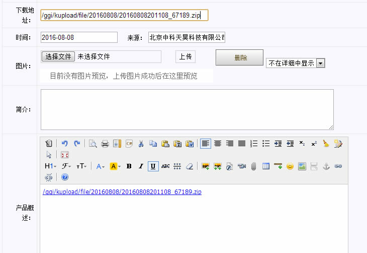 現(xiàn)在網(wǎng)站普通文字信息已經(jīng)不能滿足用戶的需求,所以,大部分網(wǎng)站都有一些技術(shù)資料下載或產(chǎn)品資料下載文件。重慶網(wǎng)站建設(shè)創(chuàng)新互聯(lián)開發(fā)的網(wǎng)站管理后臺(tái),如何才可以把文件上傳到服務(wù)器,并且把正確的下載地址填寫到下載地址輸入框。下面,我們?yōu)榇蠹以敿?xì)介紹一下網(wǎng)站如何上傳其它文件并下載: