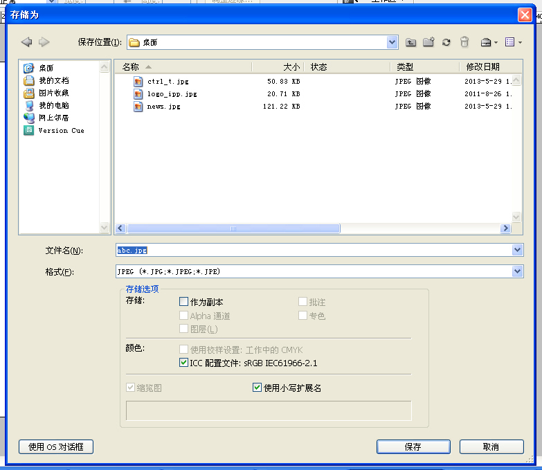 10,點(diǎn)photoshop菜單上的文件下的 "存儲(chǔ)為" 按鈕然后在彈出的對(duì)話(huà)框里 選擇存儲(chǔ)路徑和文件名和格式,圖片格式選擇 為 “JPEG(*.JPG;*.JPEG;*.JPE)”