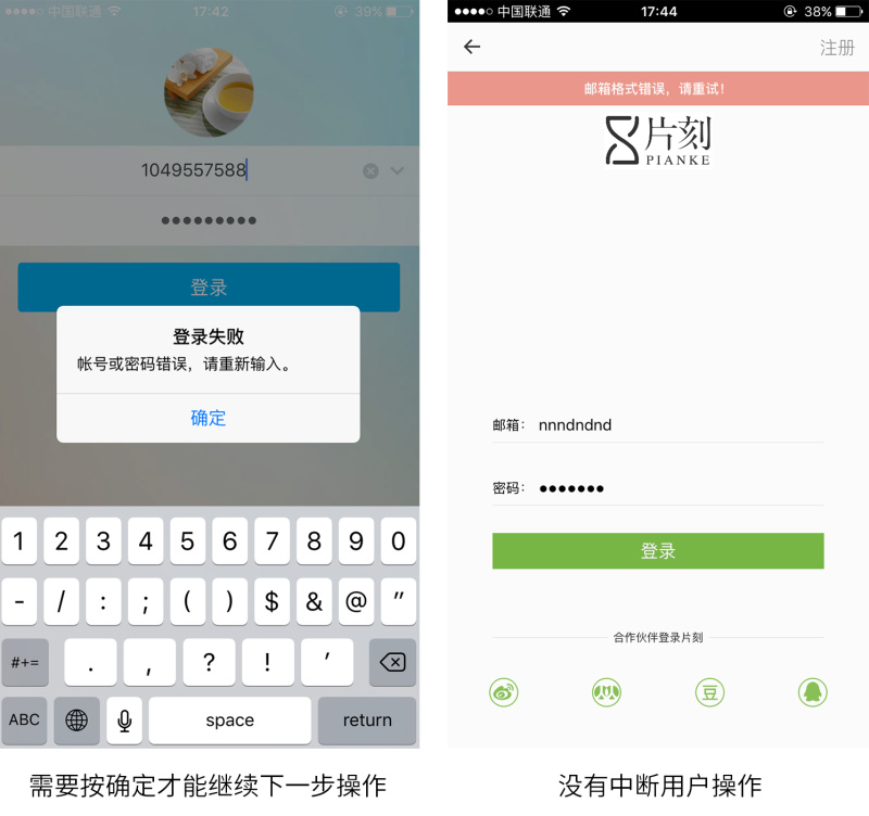 當(dāng)用戶輸入錯(cuò)誤信息時(shí),知名彈出臨時(shí)框提示用戶。而不是不做反應(yīng)讓用戶自己去猜到底是怎么回事。