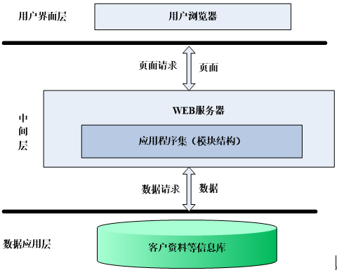 根據(jù)本系統(tǒng)的結(jié)構(gòu)和應(yīng)用服務(wù),同時(shí)考慮到整個(gè)系統(tǒng)的一體化方案、功能擴(kuò)展和靈活性,數(shù)據(jù)庫(kù)將按以下原則采用集中方式與三層結(jié)構(gòu)相結(jié)合的體系結(jié)構(gòu)。
