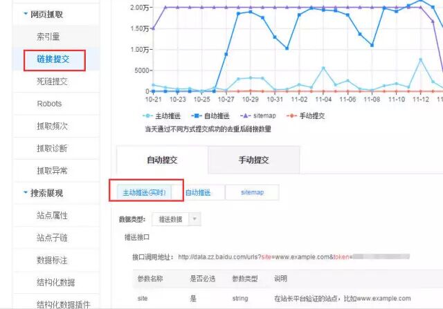 c.量級大的,百萬級以上。采用主動推送。注冊個百度站長平臺,按下圖指引,讓開發(fā)GG按下圖開發(fā)即可。