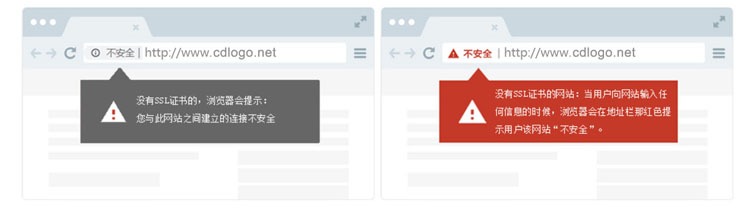 網站沒有https,首先很多瀏覽器就會給你的網站訪客提示網站“不安全”,這對網站來說,無疑于權威部門說你的企業(yè)不可信,對網站用戶體驗來講,是一種致命的打擊。