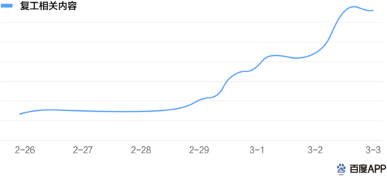 最近一周,復(fù)工相關(guān)的資訊百度搜索熱度環(huán)比上漲了678%。
