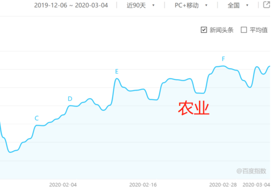 農(nóng)業(yè)這個(gè)關(guān)鍵詞的百度指數(shù)也略有上升,大概比疫前上升了10%。