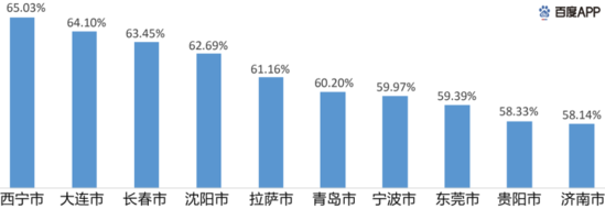 從百度搜索大數(shù)據(jù)得知,目前大部分城市的 線下復(fù)工率 均超過50%,線下復(fù)工率高的是青海省的省會西寧。