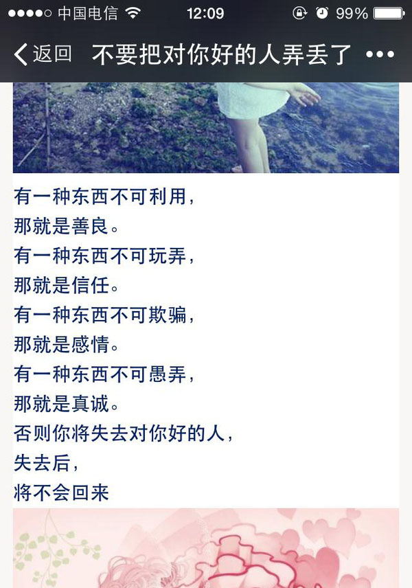2、拋棄我們傳統(tǒng)的文章首行縮進(jìn)的原則,這不是書本,手機(jī)屏幕就那么大,不用首行縮進(jìn)反而更清晰簡(jiǎn)潔。