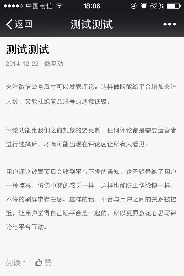 微信編輯器中的行距默認(rèn)是1.0(如圖一),但互動(dòng)君建議行距最好使用1.5——1.75(如圖二),這樣文章看起來(lái)不擠,如下圖示例:
