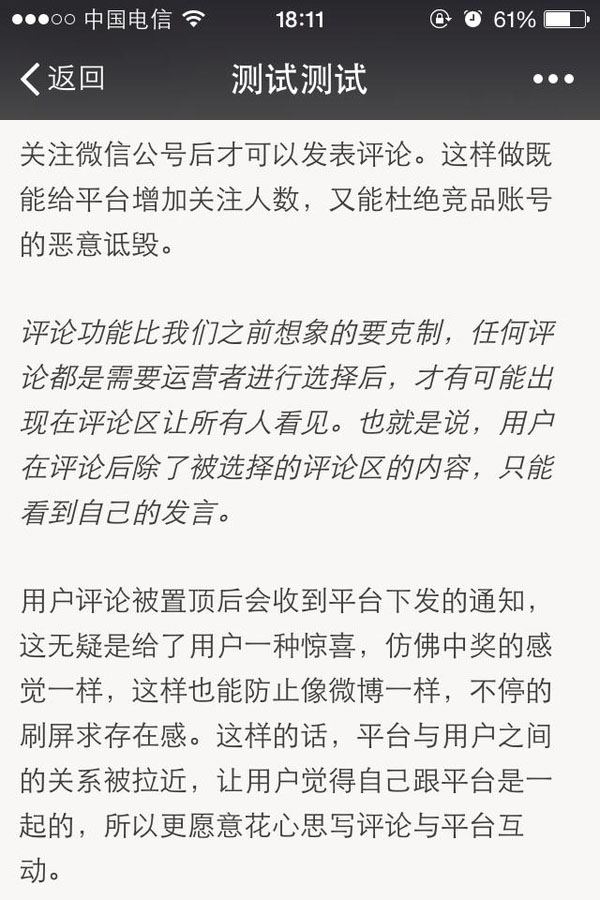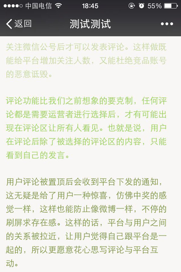 3、文章中每一個(gè)段落的長(zhǎng)度最好不要超過(guò)手機(jī)一屏。