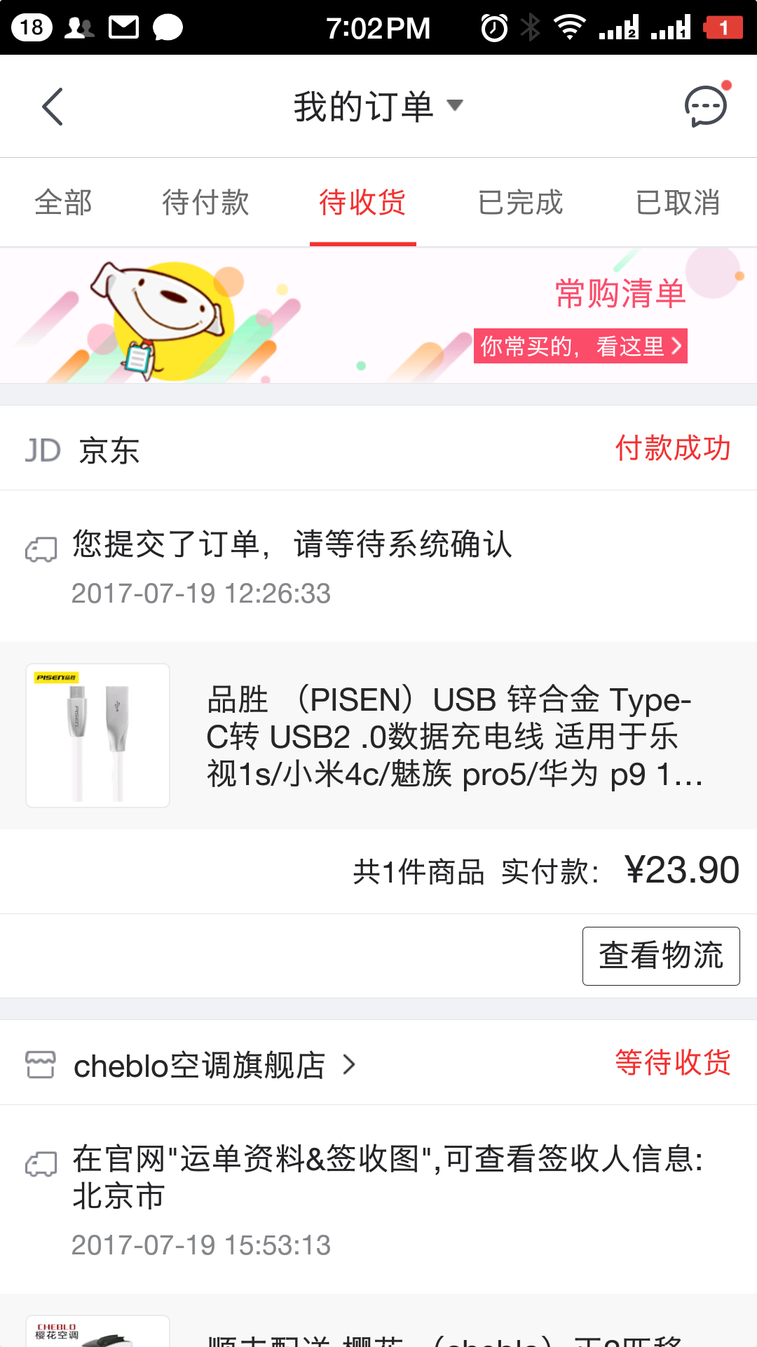 然后就是坐等收貨中……一般京東的配送還是非常靠譜的,但直到下午遲遲等不到“紅軍”來。筆者就打開京東App查看物流進(jìn)度,結(jié)果驚呆了,訂單狀態(tài)還是在審核中!可是我著急用啊,手機(jī)就要沒電了,我馬上聯(lián)系京東客服,客服查了半天,說我這個訂單時系統(tǒng)異常,并建議我重新下單。我類個喵的,靈隆科技坑爹的節(jié)奏吧。