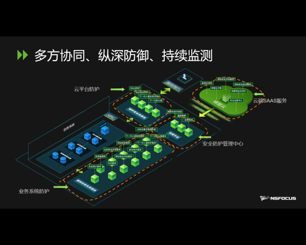 2.縱深防御:采用了軟件定義安全理念,將傳統(tǒng)安全設(shè)備轉(zhuǎn)化為全面、專業(yè)的安全即服務(wù),提供包含防護(hù)、檢測(cè)和評(píng)估等多種安全防護(hù)能力,幫助云服務(wù)商和云服務(wù)客戶分別建立縱深防護(hù)體系。