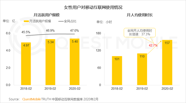 女性占據(jù)互聯(lián)網(wǎng)半壁江山,對于電商、視頻等行業(yè)的使用增加尤為突出