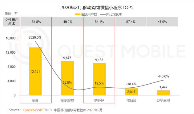 6.3 以男性用戶為主的京東、蘇寧易購?fù)ㄟ^拼購、社交裂變等玩法,吸引了較多女性,其微信小程序女性用戶占比均高于App。