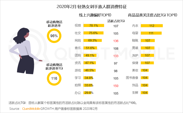 多為職場女性,收入高,線上興趣廣泛且非常活躍,網(wǎng)購頻繁,是當(dāng)前電商的優(yōu)質(zhì)核心用戶。