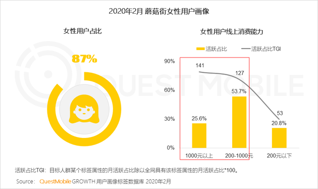 8.2 以直播為主要特色的蘑菇街,以女性用戶為主,其女性用戶線上消費能力顯著高于全網(wǎng)。