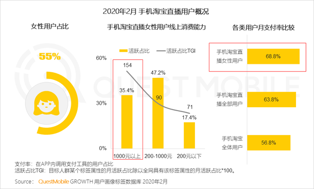 8.1 直播賣貨尤受女性歡迎,電商商城平臺的直播賣貨簡單粗暴,但在女性用戶中的轉(zhuǎn)化直接高效,支付率顯著高于平臺全體用戶。