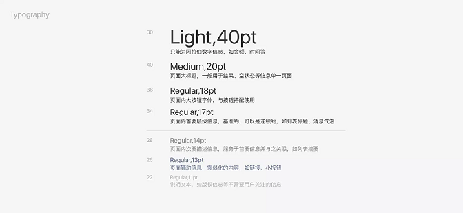 微信內字體的使用與所運行的系統字體保持一致,常用字號為20, 18, 17, 16,14 13, 11(pt),使用場景具體如下: