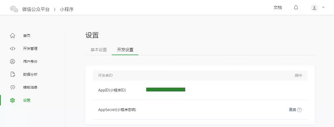 進入“設置-開發(fā)設置”,獲取AppID信息。