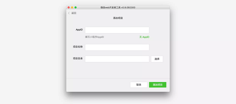 開發(fā)者工具安裝完成后,打開并使用微信掃碼登錄。選擇創(chuàng)建“項目”,填入上文獲取到的 AppID ,設置一個本地項目的名稱(非小程序名稱),比如“我的第一個項目”,并選擇一個本地的文件夾作為代碼存儲的目錄,點擊“新建項目”就可以了。