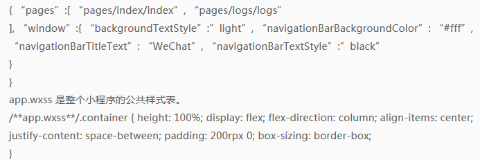 app.json 是對整個小程序的全局配置。我們可以在這個文件中配置小程序是由哪些頁面組成,配置小程序的窗口背景色,配置導航條樣式,配置默認標題。注意該文件不可添加任何注釋。