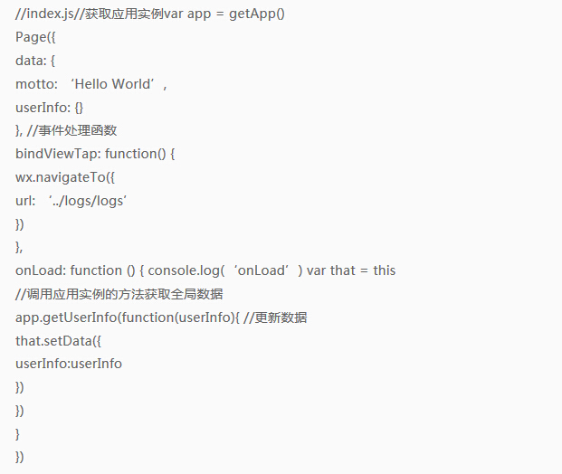 index.js 是頁面的腳本文件,在這個文件中我們可以監(jiān)聽并處理頁面的生命周期函數、獲取小程序實例,聲明并處理數據,響應頁面交互事件等。