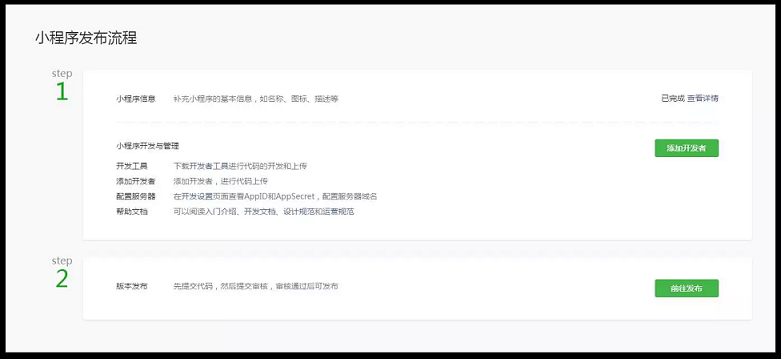 完成注冊后,微信小程序信息完善步驟和開發(fā)可同步進行。