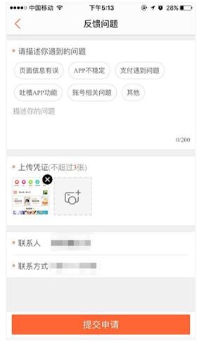 反饋支持文字和圖片在于通過(guò)用戶對(duì)問(wèn)題的描述和發(fā)生問(wèn)題的頁(yè)面,能夠有效幫助客服或者產(chǎn)品經(jīng)理定位問(wèn)題,較快地尋找原因,解決問(wèn)題,另外也適合用戶反饋對(duì)某一頁(yè)面設(shè)計(jì)的建議。
