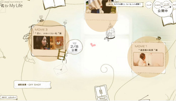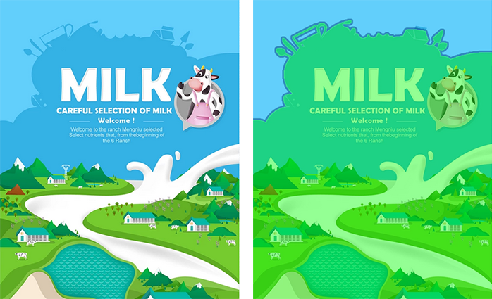 第二張圖中的不規(guī)則的面切割畫面讓頁面整體比較活潑可愛,和畫面的品牌牛奶的氣質(zhì)非常吻合,這樣的不規(guī)則元素被穿插在整個畫面中。