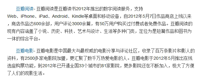 如果正文文字換成百度百科這種14號(hào)字體,就會(huì)顯得有種“傻大個(gè)兒”的感覺,在豆瓣上不夠精致細(xì)膩。(當(dāng)然我不是說(shuō)百度百科不好,畢竟不同網(wǎng)站面對(duì)不同群體,需要有針對(duì)性。)