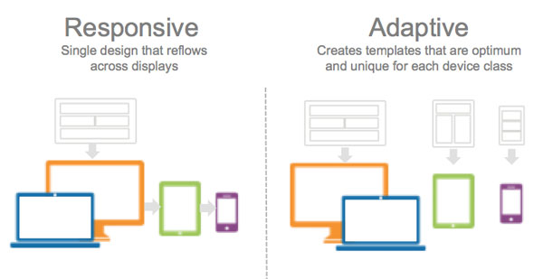 自適應(yīng)設(shè)計(jì)是不太靈活的,只有工作在盡可能多的屏幕。如果一個(gè)新的屏幕大小的設(shè)備被釋放,您可能必須編輯您的設(shè)計(jì)或添加一個(gè)新的。響應(yīng)的網(wǎng)站在工作中是足夠靈活的,但自適應(yīng)網(wǎng)站將可能需要一些臨時(shí)維護(hù)。