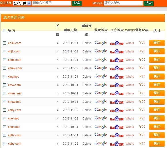首先,要得到刪除域名的列表,從這些刪除域名的列表里面,篩選出自己認(rèn)為有價(jià)值的刪除域名。比較常見的刪除域名篩選查詢可直接從百度上搜到,或在“創(chuàng)新互聯(lián)域名搶注平臺(tái)”即可查詢到所有即將被刪除的域名列表。