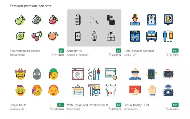 付費資源免費資源都有,雖然我不會直接拿來用。但基本想要搜一下相關(guān)的icon,都是能夠找到適合的。