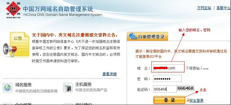 (1)打開萬網(wǎng)域名管理平臺(如果不知道管理平臺域名,可以在百度直接搜索“萬網(wǎng)域名解析平臺”)