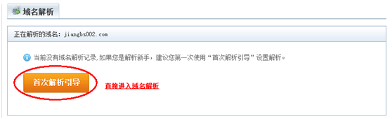 (2)輸入域名和管理密碼登錄,點擊右邊的 “首次解析引導”,如果右邊沒有這個按鈕,請點左邊欄目中的域名解析右邊就會有這個按鈕了。