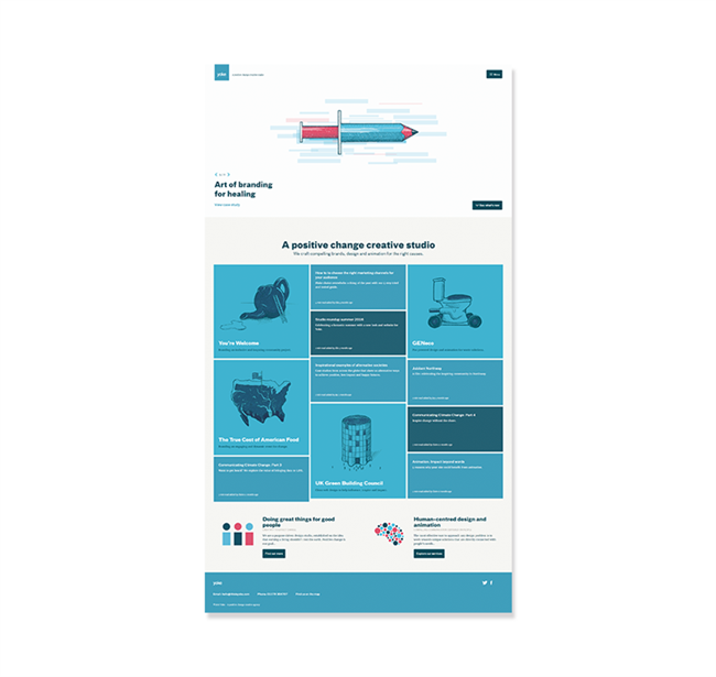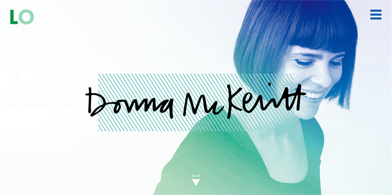 頁面的主色為清爽的藍綠色,這時選擇的背景配圖是人臉眼睛的部分,攝影作品本身帶有柔和的肉色,與藍綠色相得益彰: