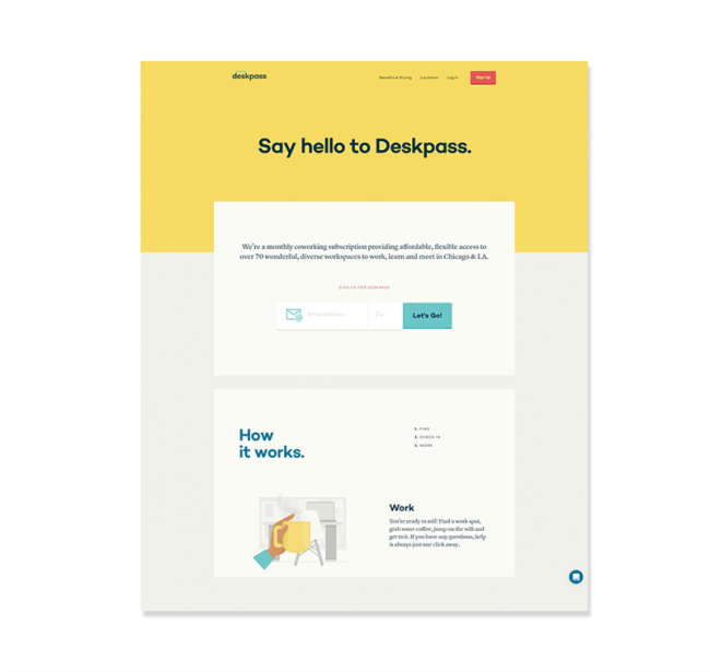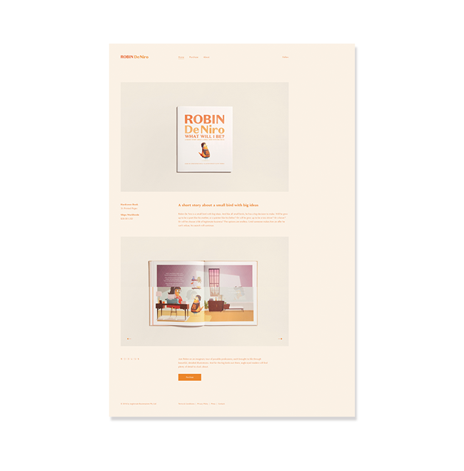 每一屏運用不同的背景色,配圖以及網(wǎng)頁元素的色彩,比如橙色的按鈕和配圖與背景色相協(xié)調(diào):