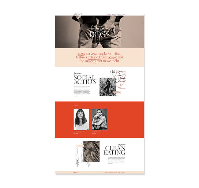 頁面的主色為橙色,而襯托色為淺色粉,這兩種色彩為鄰近色,彼此飽和度上有非常明顯的對比,也能很好的襯托出主色,為頁面的氛圍增加溫度:
