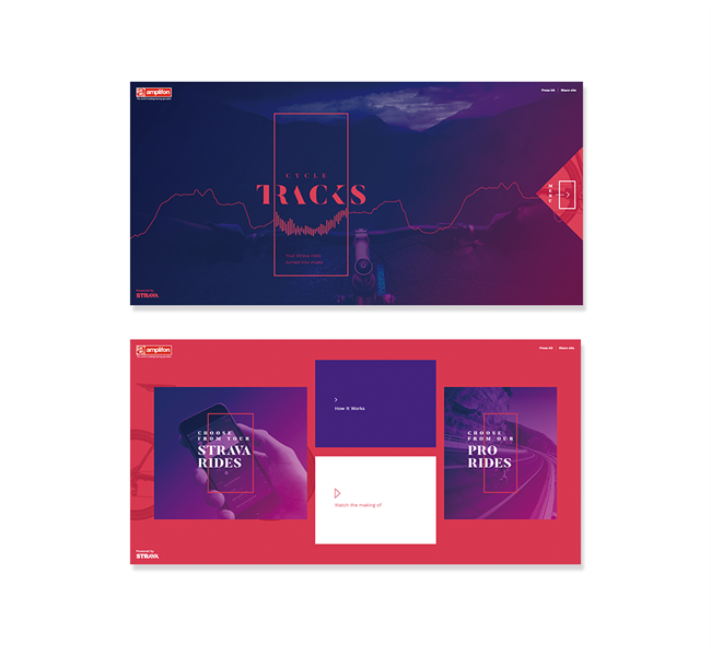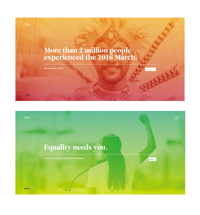 利用漸變色的變化,通過切換圖片,漸變色也隨即改變。由于漸變的飽和度較高,因此其上方的元素運用白色展示,使文字清晰可辨: