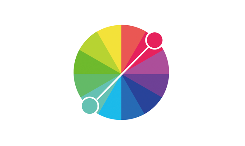 將色環(huán)上處于180°相對而存在的色彩進行搭配,這兩種色彩在視覺上形成互補關(guān)系。我們知道色彩并不能簡單陳述為紅色、藍色,因此在相對的關(guān)系上也不能簡單就概括紅與藍是互補這樣籠統(tǒng)的結(jié)論,因為實際上紅色和藍色的色調(diào)都高低明暗種類繁多。而我們知道處于相對180°位置的一組色彩其本身相互補充又相互制衡的關(guān)系,在實際運用中會催生一種平衡的視覺滿足感。我們要做的依然是從情感上而非理性層面打開視覺的脈輪。