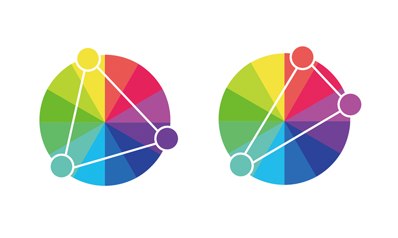 處于色環(huán)上距離彼此120°位置的三種色彩,兩兩之間彼此為對比色,而這三種色彩的搭配也會形成非常和諧的組合。
